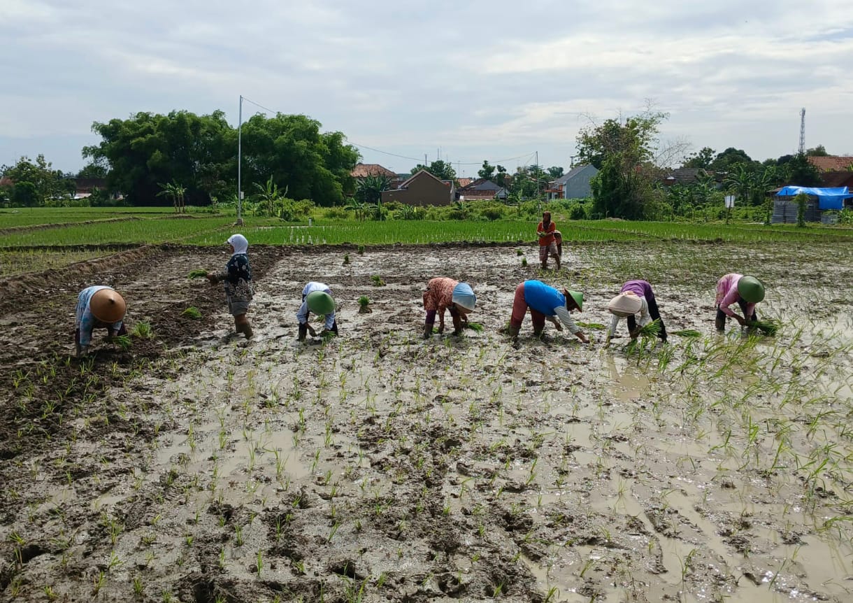 Bhabinkamtibmas Kelurahan Kauman Polsek Blora Polres Blora Polda Jawa Tengah Aipda Achmad Nur Kholik melakukan kegiatan sambang desa dengan mendatangi para petani yang sedang menggarap sawah di desa setempat, Rabu, (11/12/2024).
